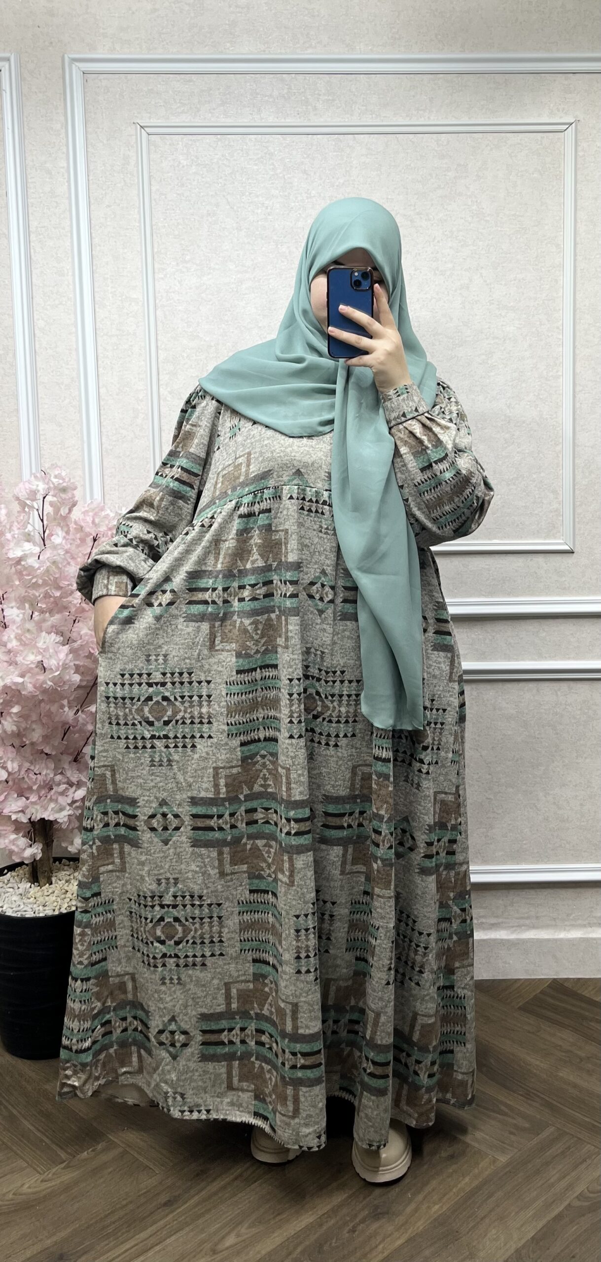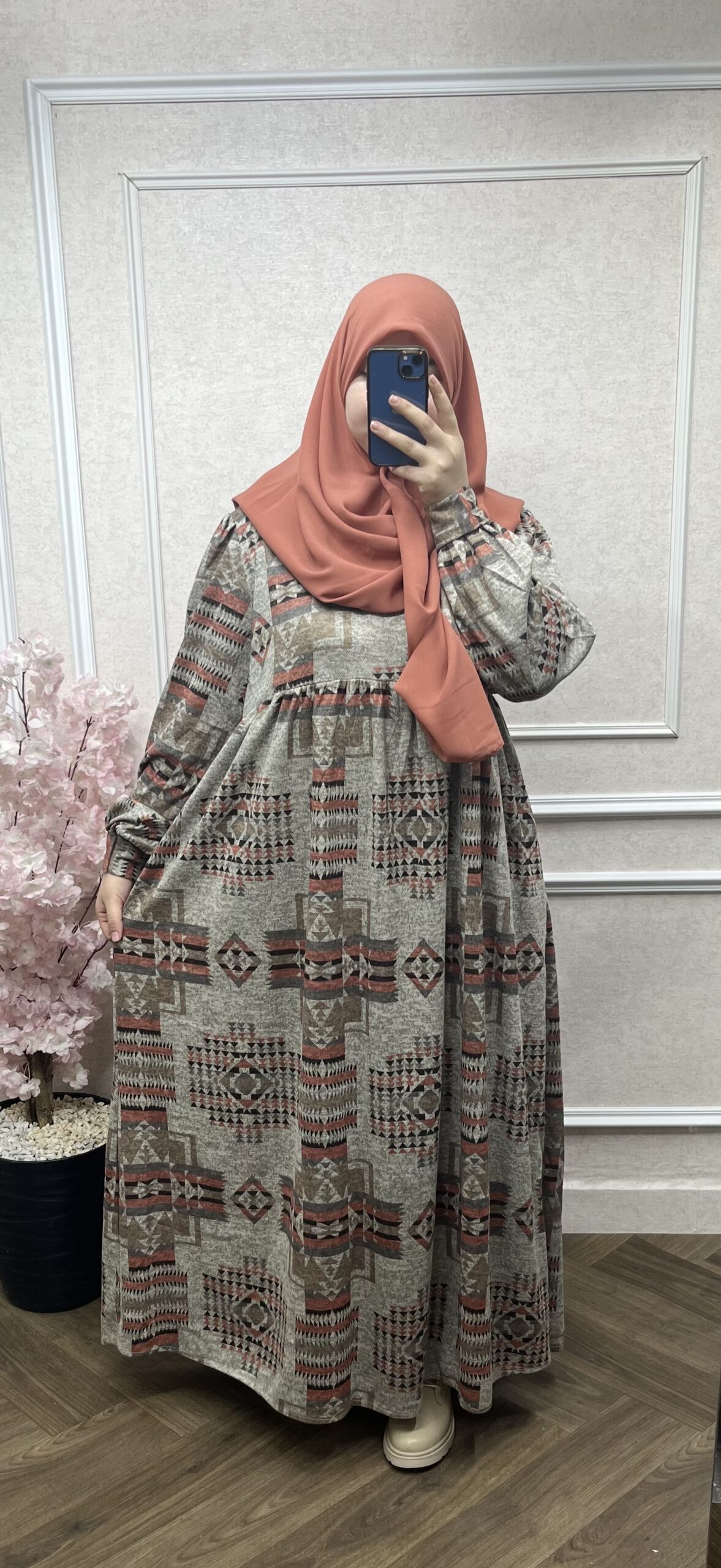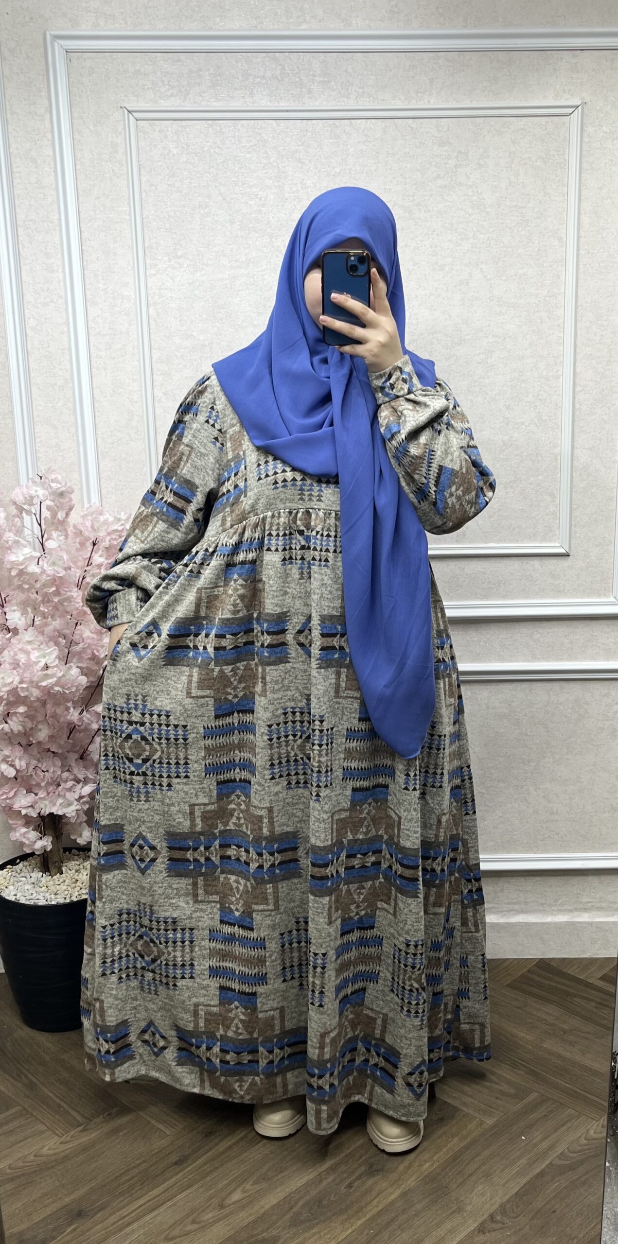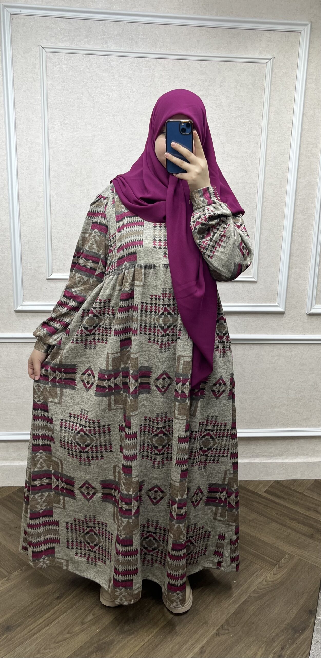طقم فستان هبة الشتوي مع فولار متر ونصف علا متر ونصف